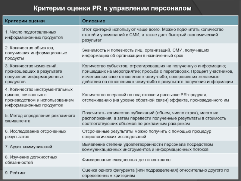 Слайд 25 По результатам различных методик оценки результативности PR в управлении персонала