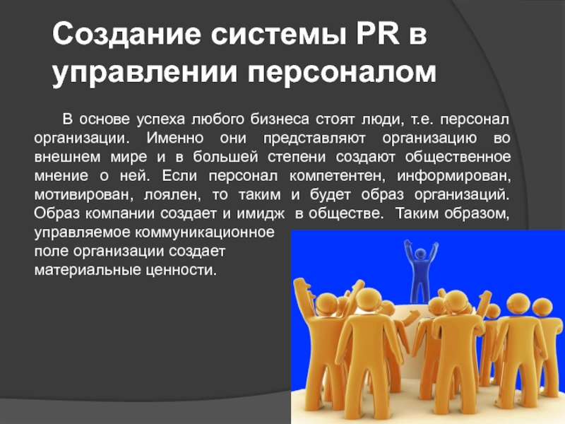PR в управлении персоналом – целенаправленное и структурированное информационное воздействие на персонал, призванное укрепить в его глазах имидж организации.