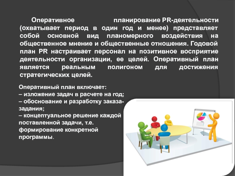 Слайд 20 Оперативное планирование PR-деятельности (охватывает период в один год и менее) представляет