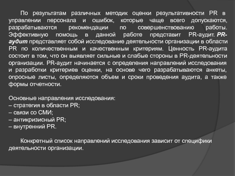 среды, оценивает эффективность PR-акций и мероприятий и готовит свои рекомендации