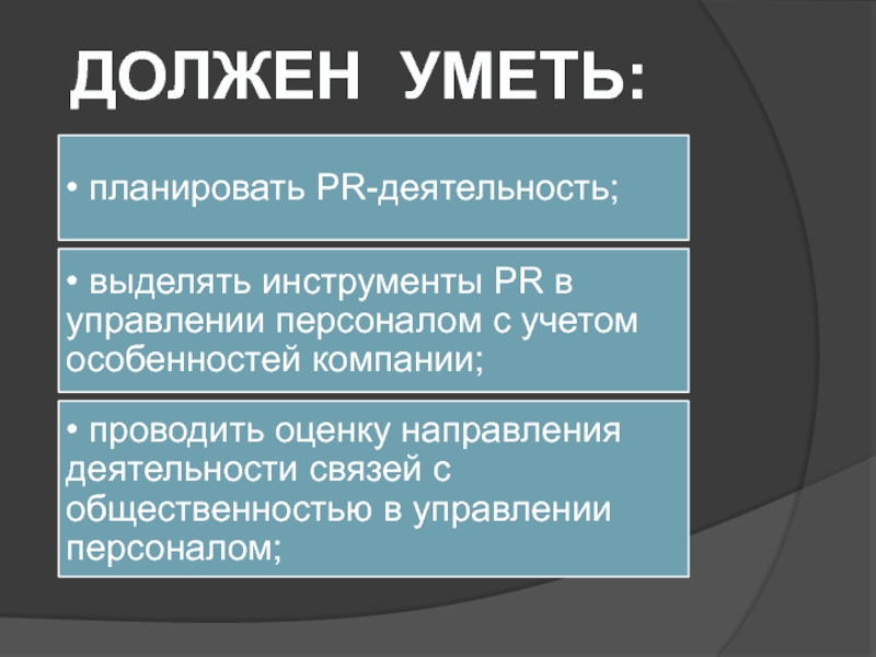 Основная задача внутреннего PR или PR в управлении персоналом – информировать, развивать и вызывать доверие персонала организации.
