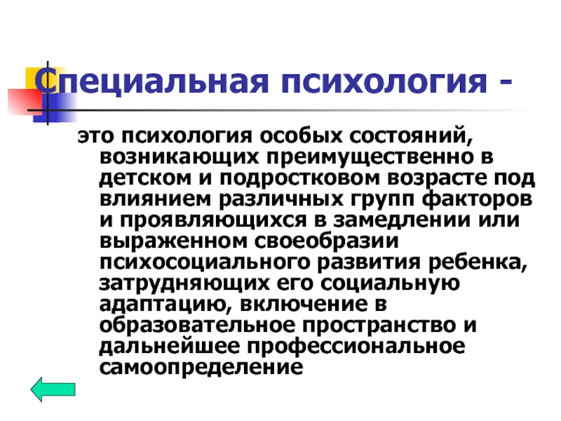 в замедлении или выраженном своеобразии психосоциального развития ребенка, затрудняющих его социальную адаптацию, включение в образовательное пространство и дальнейшее профессиональное самоопределение