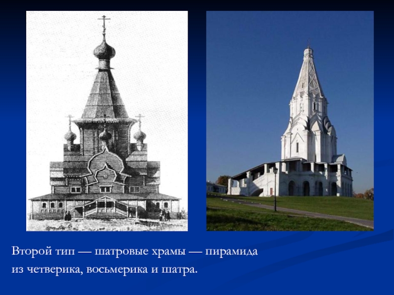 Слайд 11Второй тип — шатровые храмы — пирамида