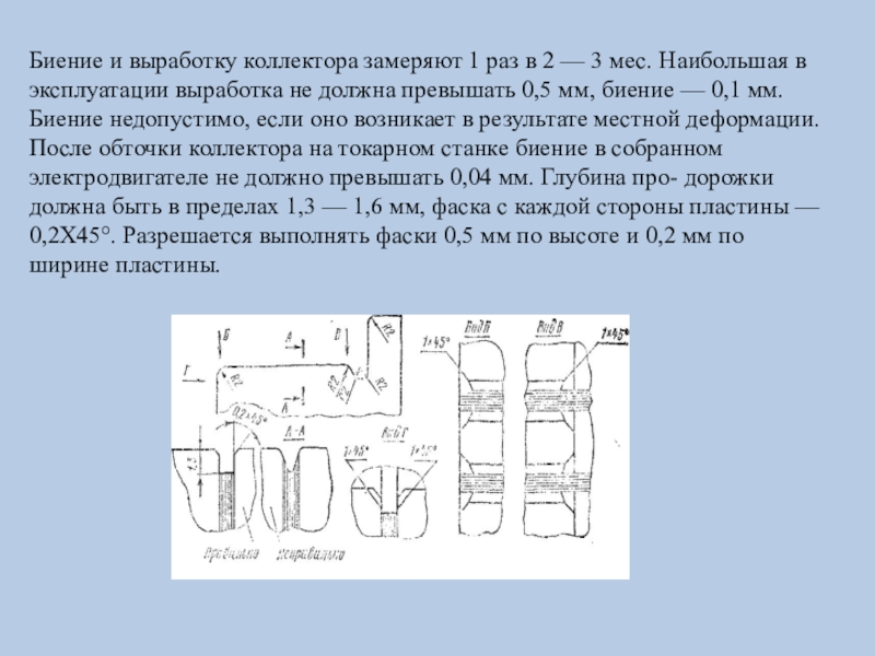 Слайд 6Биение и выработку коллектора замеряют 1 раз в 2 —