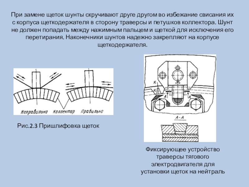 Слайд 8При замене щеток шунты скручивают друге другом во избежание свисания