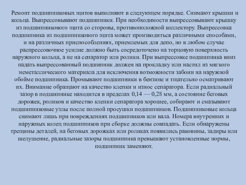 Слайд 16Ремонт подшипниковых щитов выполняют в следующем порядке. Снимают крышки и