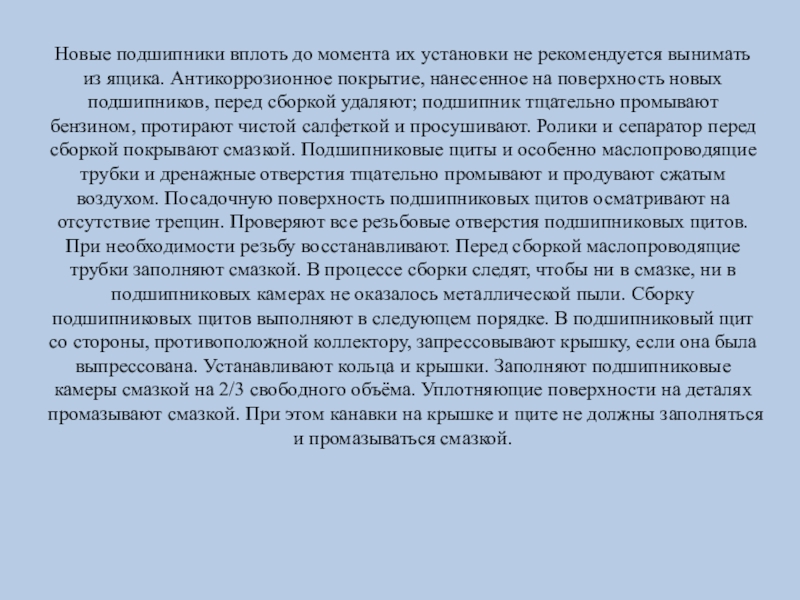 Слайд 17Новые подшипники вплоть до момента их установки не рекомендуется вынимать