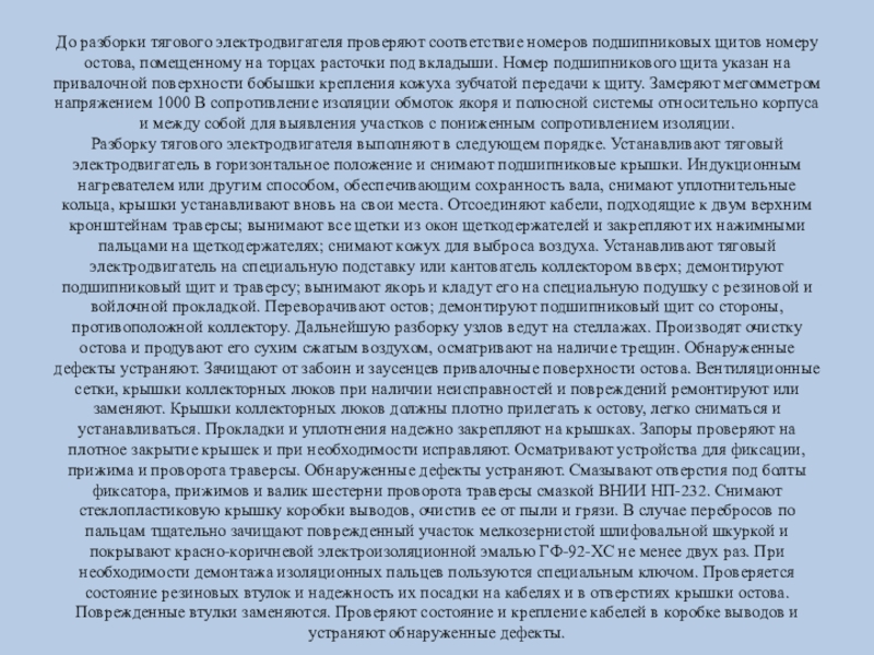 Слайд 13До разборки тягового электродвигателя проверяют соответствие номеров подшипниковых щитов номеру