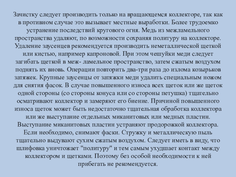 Слайд 4Зачистку следует производить только на вращающемся коллекторе, так как в