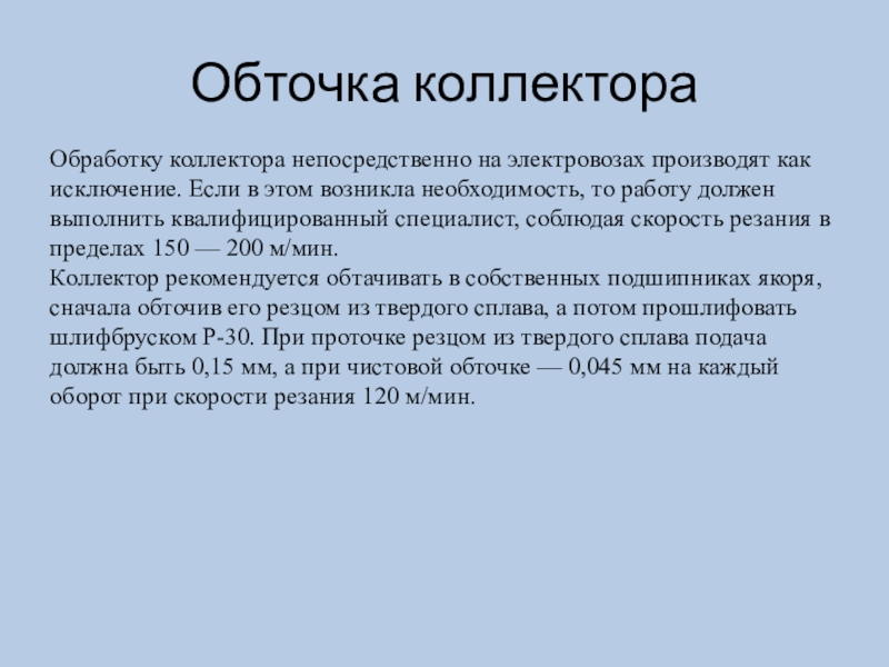 Обработку коллектора непосредственно на электровозах производят как исключение. Если