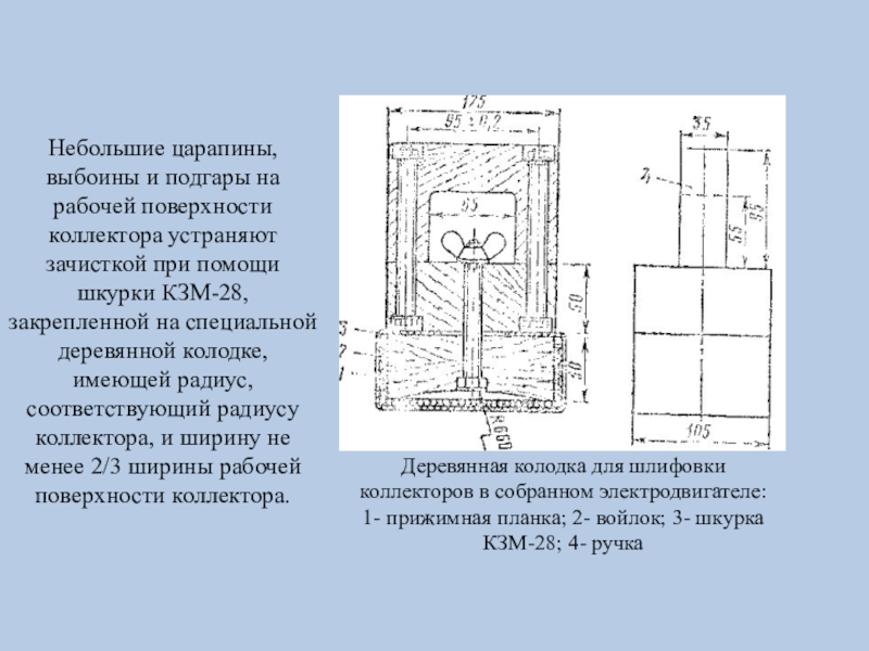 Слайд 3Небольшие царапины, выбоины и подгары на рабочей поверхности коллектора устраняют