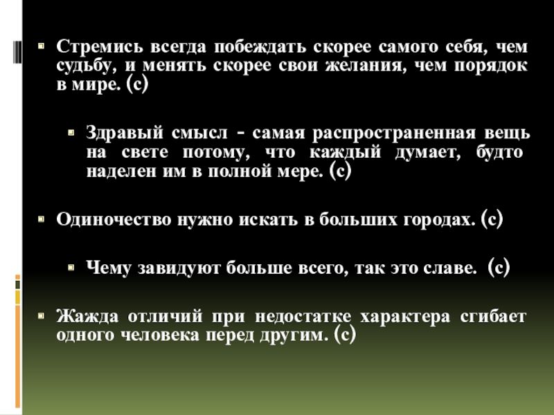 Слайд 24Стремись всегда побеждать скорее самого себя, чем судьбу, и менять