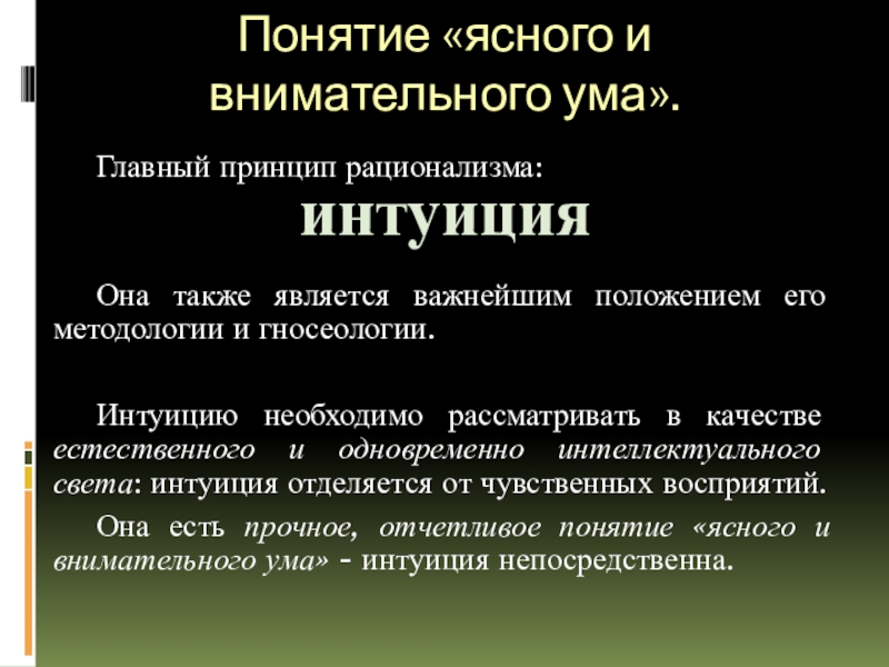 Она есть прочное, отчетливое понятие «ясного и внимательного ума» - интуиция непосредственна.