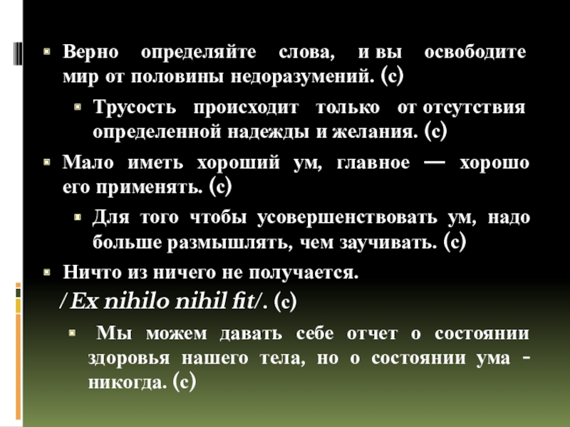 Слайд 25Верно определяйте слова, и вы освободите мир от половины недоразумений. (с)
