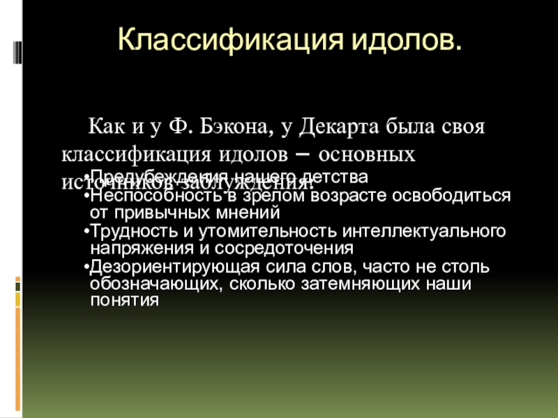 Декарт же на примере физических знаний отправлялся от самых общих положений и от них переходил к более частным положениям физики, достигая затем максимально конкретных наук.