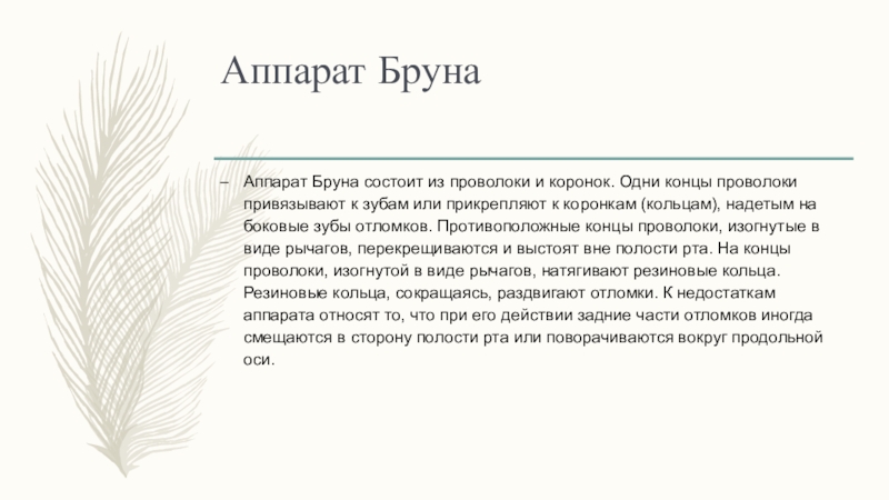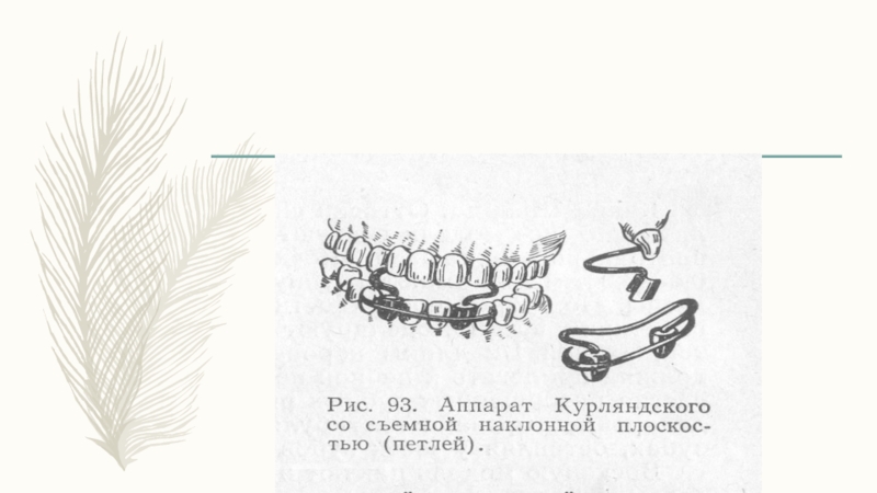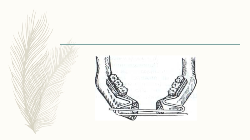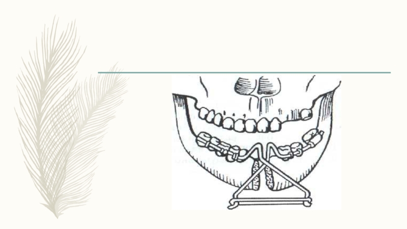 боковые зубы отломков. Противоположные концы проволоки, изогнутые в виде рычагов, перекрещиваются и выстоят вне полости рта. На концы проволоки, изогнутой в виде рычагов, натягивают резиновые кольца. Резиновые кольца, сокращаясь, раздвигают отломки. К недостаткам аппарата относят то, что при его действии задние части отломков иногда смещаются в сторону полости рта или поворачиваются вокруг продольной оси.
