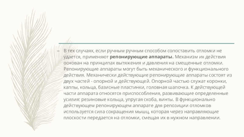 удается, применяют репонирующие аппараты. Механизм их действия основан на принципах