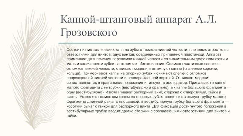 Слайд 8Каппой-штанговый аппарат А.Л.Грозовского