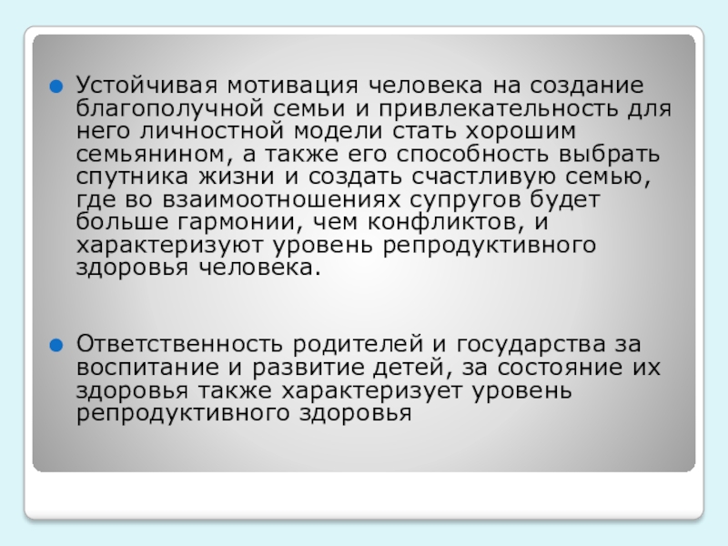 Слайд 3Уровень репродуктивного здоровья — это итог всего комплекса состояния репродуктивного