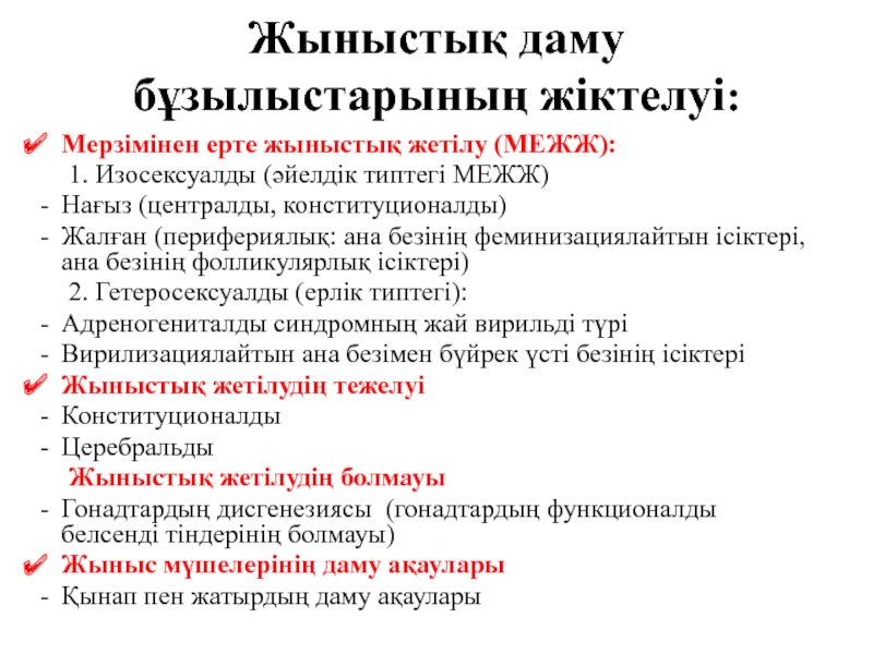 Слайд 12Жыныстық даму бұзылыстарының жіктелуі: