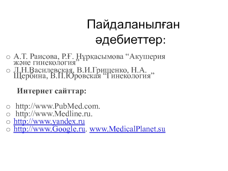 А.Т. Раисова, Р.Ғ. Нұрқасымова “Акушерия және гинекология”