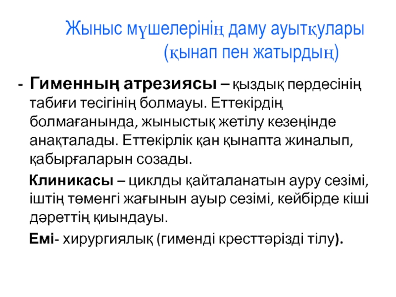 Слайд 48 Қынап пен жатыр мойнының өткізгіштігінің бұзылуының түрлері
