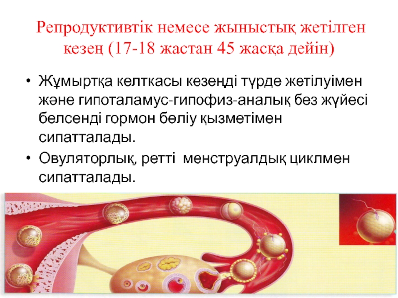 Слайд 9 Репродуктивтік немесе жыныстық жетілген кезең (17-18 жастан 45 жасқа