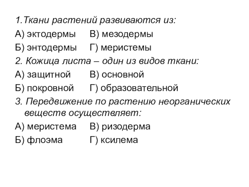 по растению неорганических веществ осуществляет:А) меристема В) ризодерма