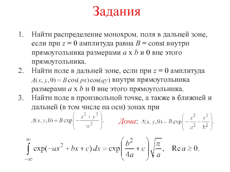 делается заменаЗадание поля в некоторой плоскости z = 0 позволяет определить его как «за», так и «перед» этой плоскостью (z > 0 и z < 0).