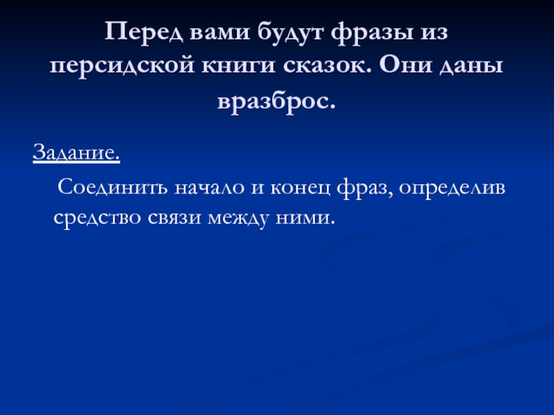 Слайд 7Перед вами будут фразы из персидской книги сказок. Они даны