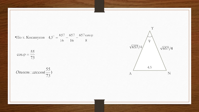 => AH ⊥(BCT) по признаку, тогда ∠ATH-искомый