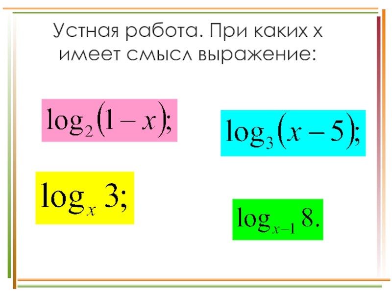 Слайд 3Устная работа. При каких х имеет смысл выражение: