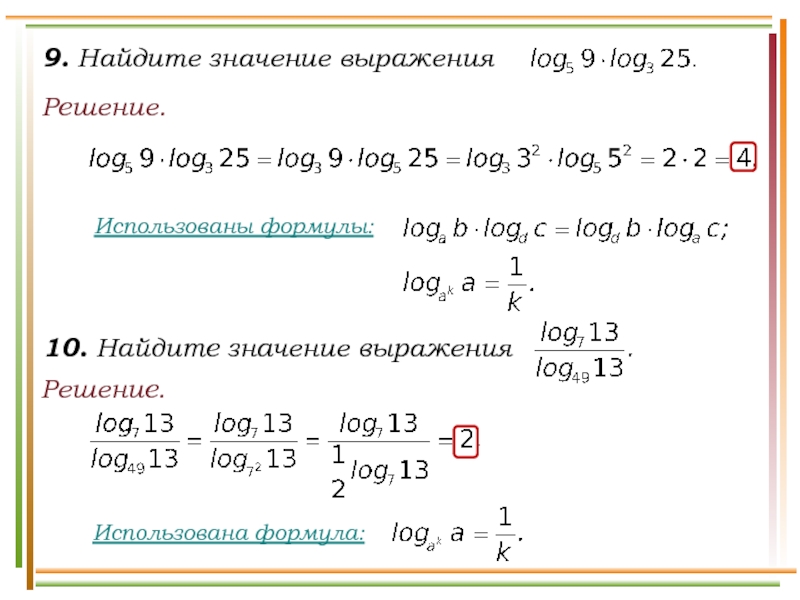 Слайд 1Решение заданий № 9 ЛОГАРИФМЫ по материалам открытого банка задач ЕГЭ по
