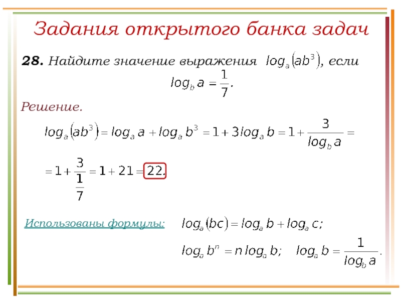 Задания открытого банка задачРешение. Решение. Использованы формулы: