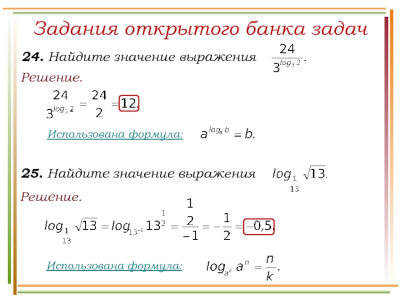 Решение. Задания открытого банка задачИспользованы формулы: Решение.