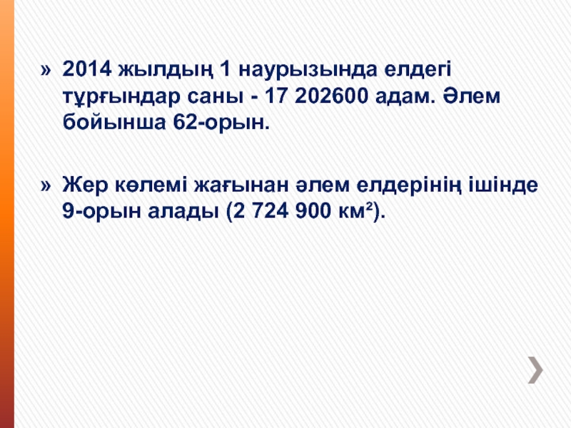 Слайд 52014 жылдың 1 наурызында елдегі тұрғындар саны - 17 202600