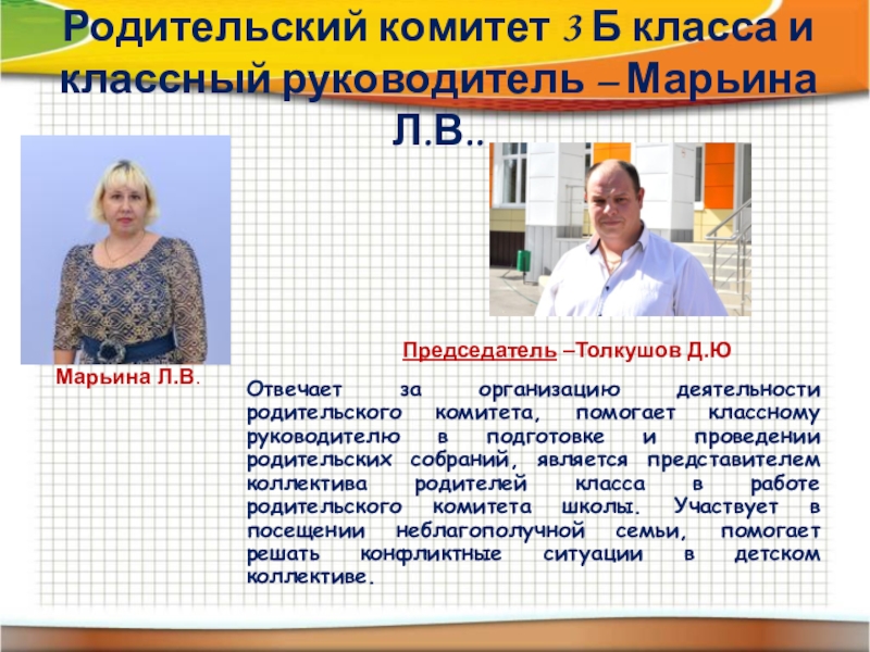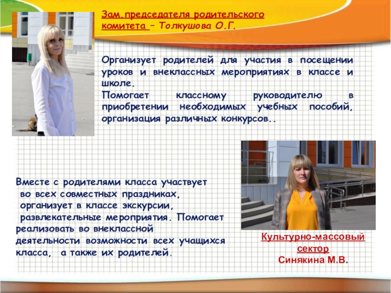 Зам.председателя родительского комитета – Толкушова О.Г.