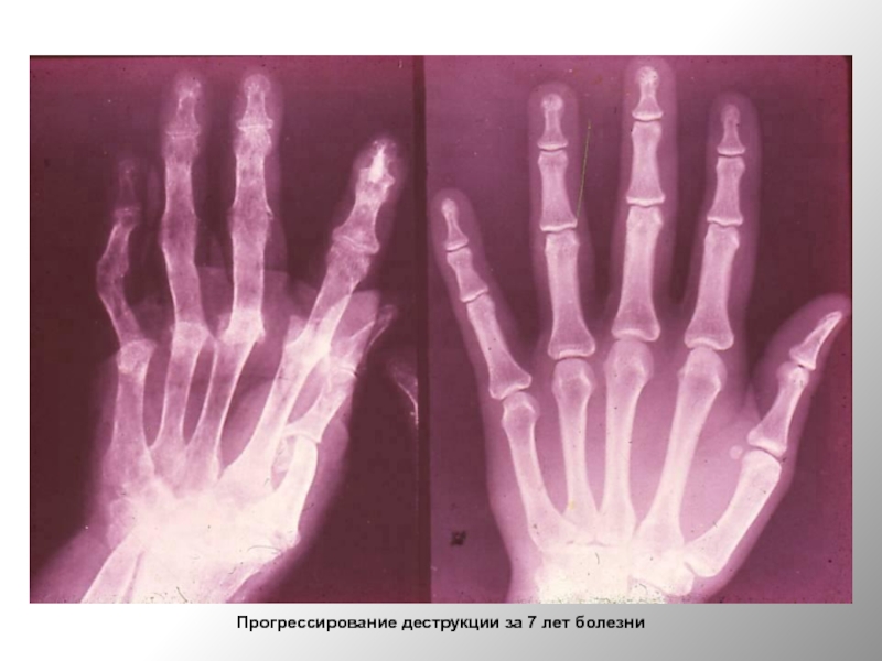 Слайд 50Прогрессирование деструкции за 7 лет болезни