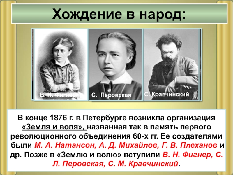 С. Л. Перовской, С. М. Кравчинского, А. И. Желябова, М. А. Натансона
