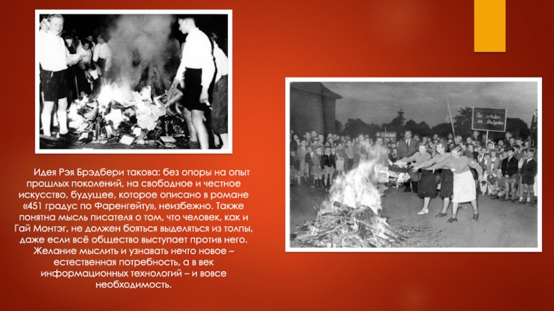 Слайд 9Идея Рэя Брэдбери такова: без опоры на опыт прошлых поколений,