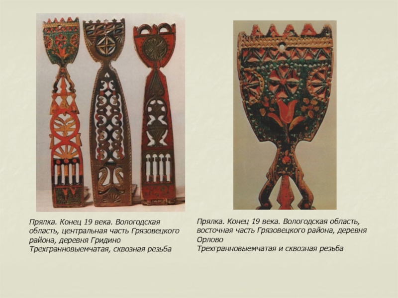 Слайд 44Прялки с Пучуги конца XIX - начала XX века очень