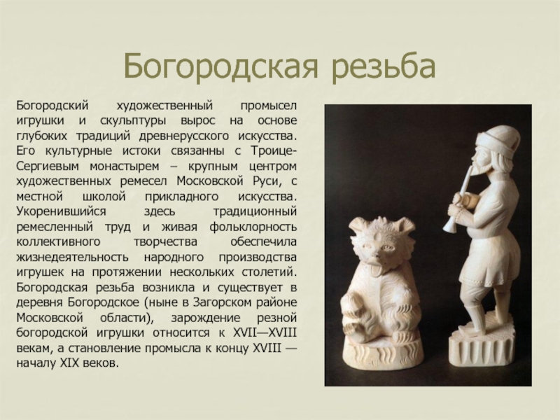 Слайд 2Богородский художественный промысел игрушки и скульптуры вырос на основе глубоких