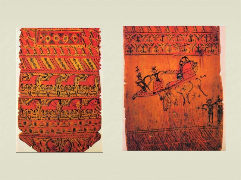 Слайд 50Истоки символов мезенской росписи прежде всего лежат в мифологическом мировоззрении