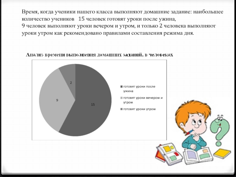 Слайд 9Время, когда ученики нашего класса выполняют домашние задание: наибольшее количество
