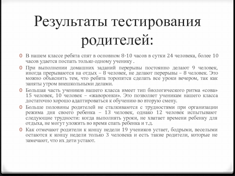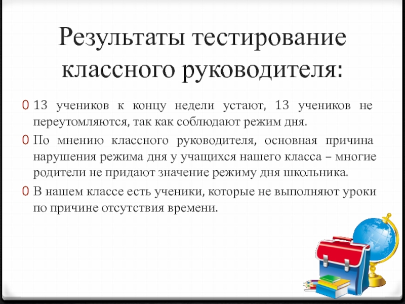 руководителя, основная причина нарушения режима дня у учащихся нашего класса – многие родители не придают значение режиму дня школьника.