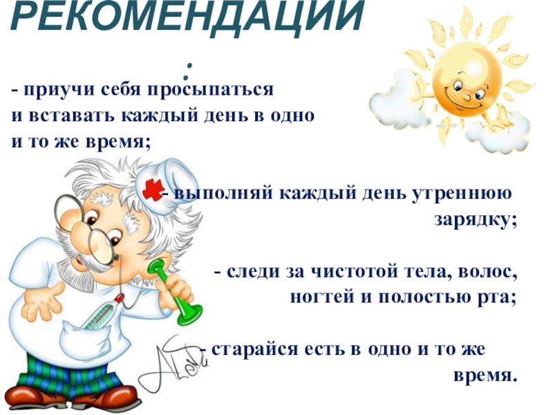 - следи за чистотой тела, волос, ногтей и полостью рта;