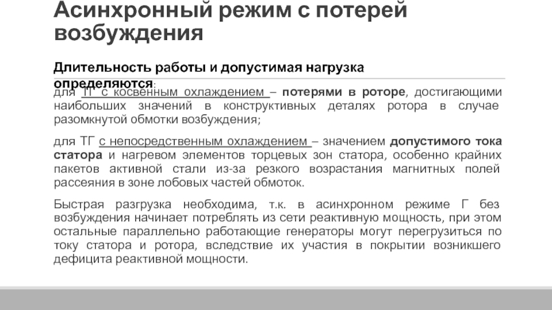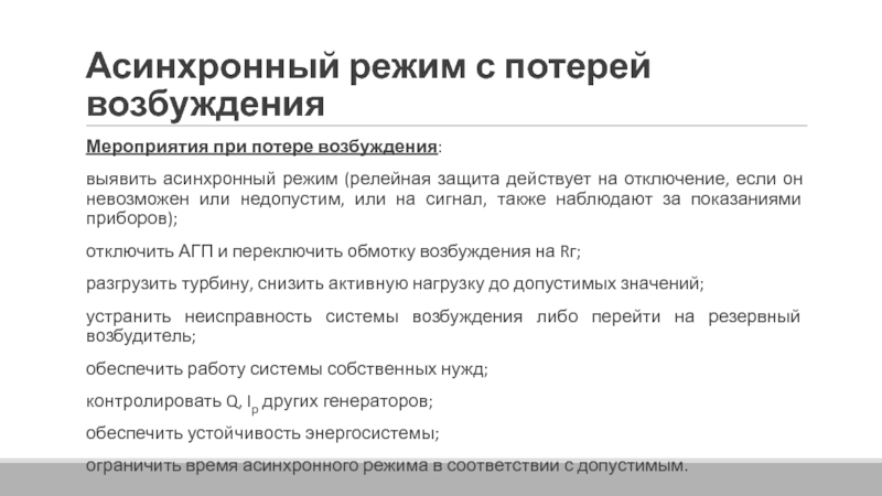 2) асинхронный режим с потерей возбуждения