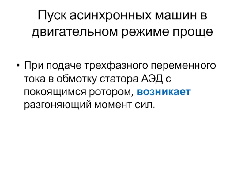 Слайд 9Пуск асинхронных машин в двигательном режиме проще