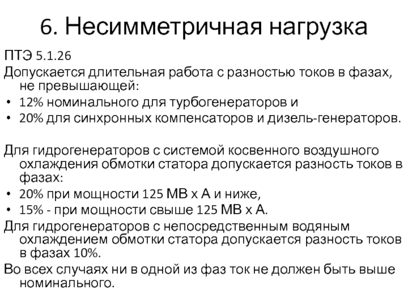 Для гидрогенераторов с системой косвенного воздушного охлаждения обмотки статора допускается разность токов в фазах: