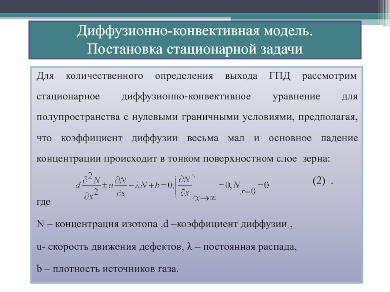 ползучести на выход ГПД. Предложить диффузионно-конвективную модель для описания выхода